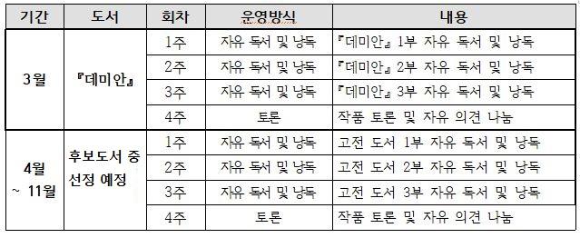 ❍ 운영내용: 고전에 대한 심리적 부담을 완화하기 위해 비교적 가볍게 읽을 수 있는 고전 도서를 중심으로, 사전 완독 없이 현장에서 함께 읽는 독서회 운영