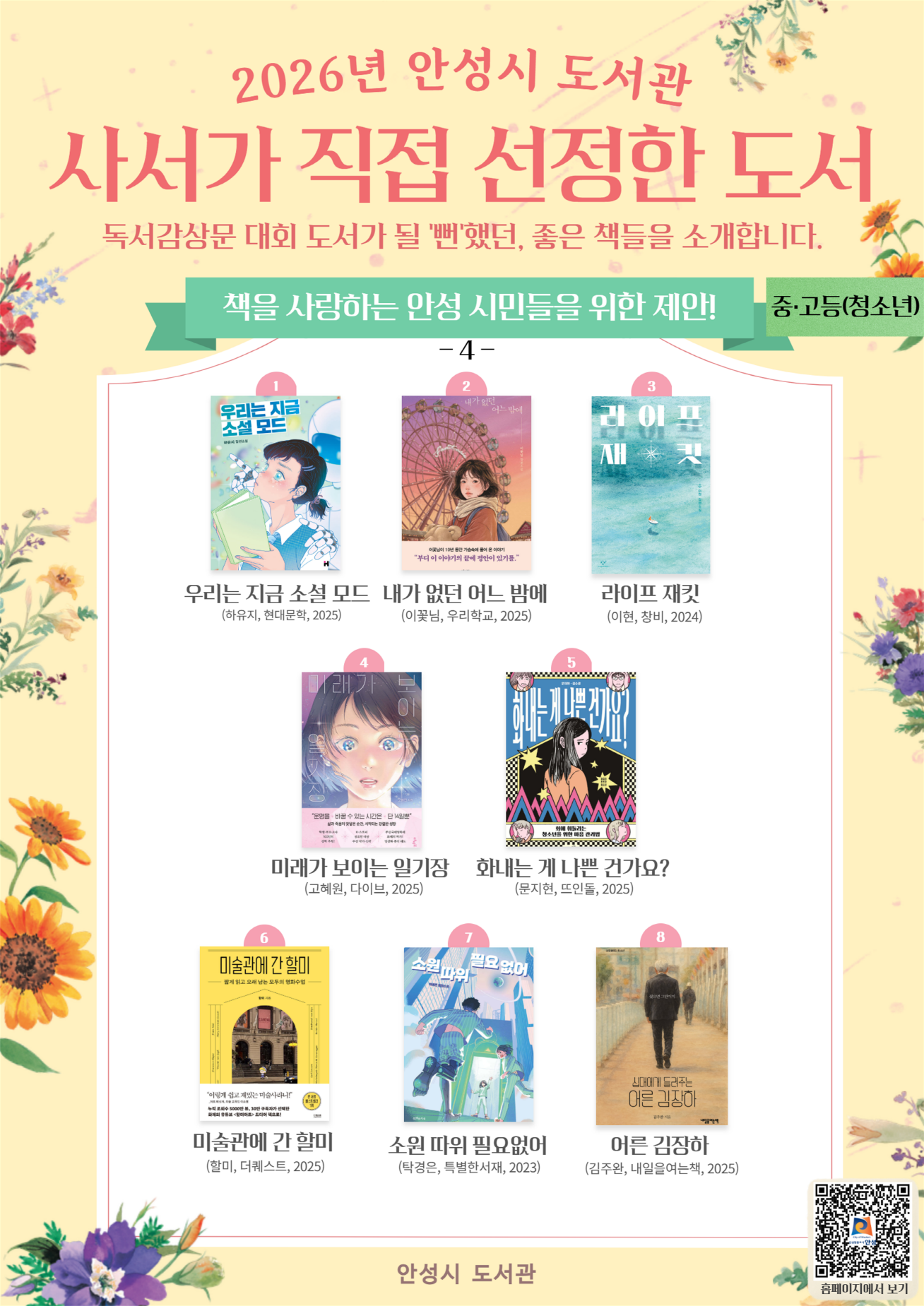 2026 안성시 도서관 사서가 선정한 도서 안내
