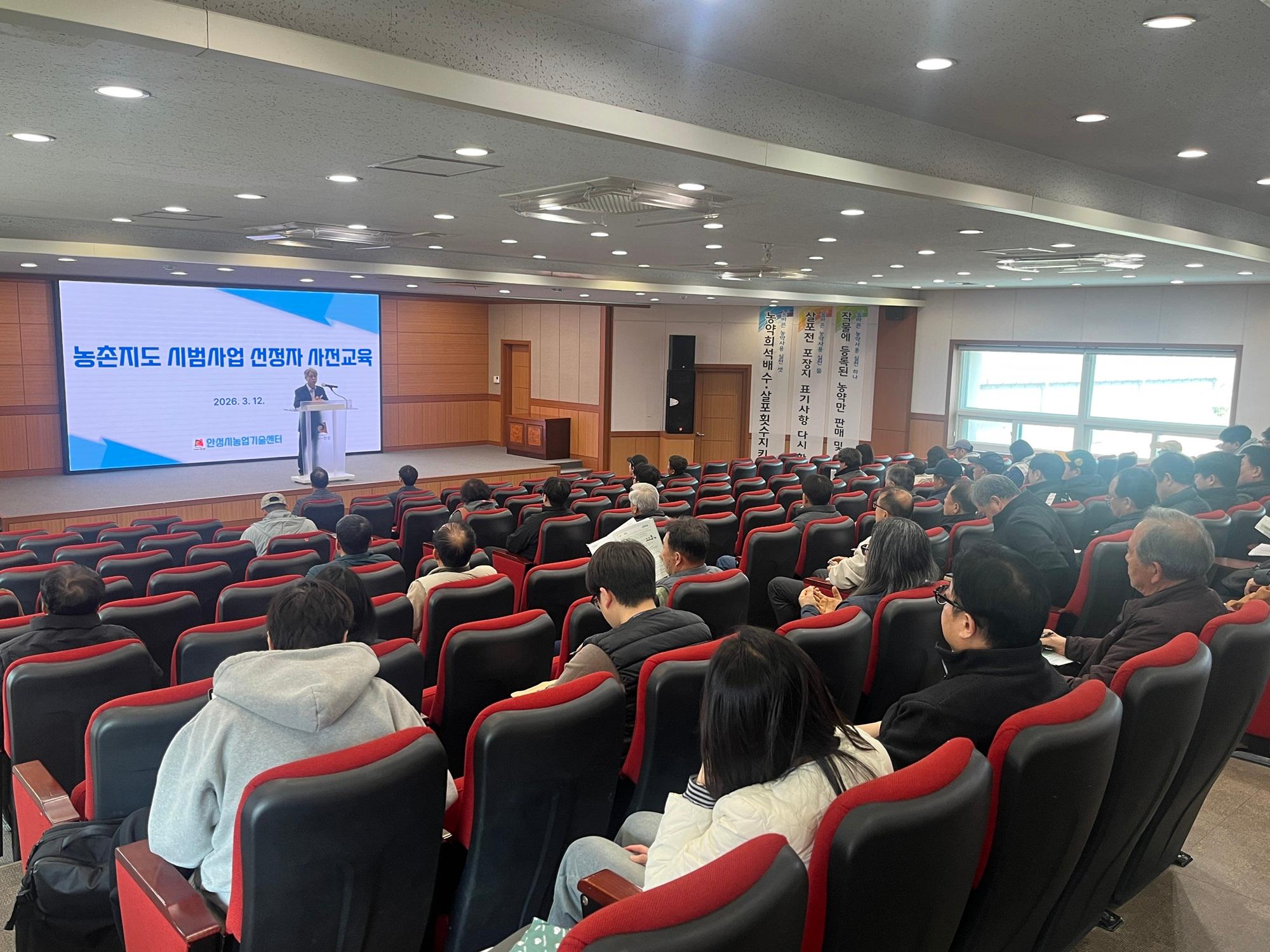 안성시농업기술센터가 3월 12일 ‘2026년 농촌지도 시범사업’ 선정자를 대상으로 사업 추진을 위한 사전교육을 진행했다. 이번 교육은 사업의 원활한 수행을 돕고, 농업인들의 이해도를 높이기 위해 마련됐다.