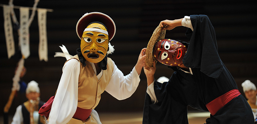 덧뵈기는 ‘탈을 쓰고 덧본다.’라는 뜻에서 사용된 ‘탈춤놀이’의 남사당 용어이다.